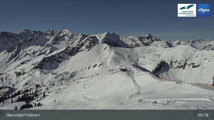 Die Webcam eröffnet den Blick von der Gipfelstation der Fellhornbahn im bayerischen Oberstdorf.