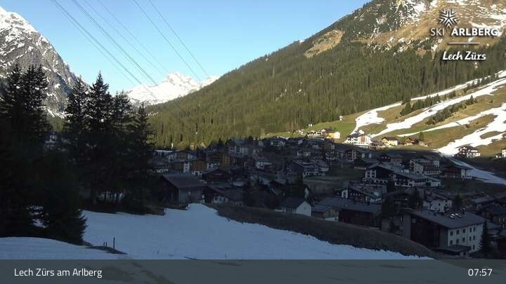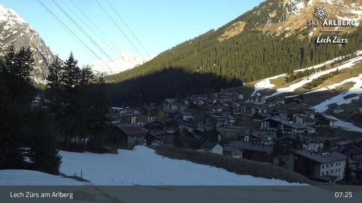 Genieße den Ausblick über die Ortschaft Oberlech sowie die umliegende Bergwelt.