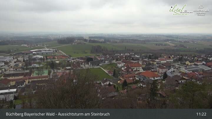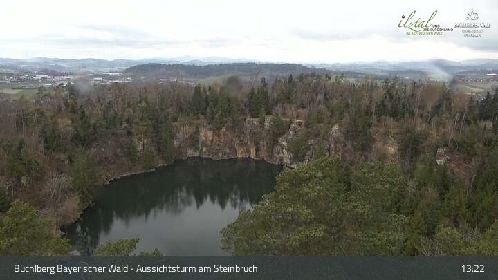 Webcam Büchlberg und Steinbruchsee vom Aussichtsturm, 527 m