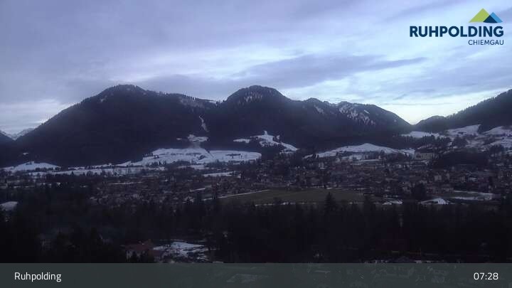 Webcam Panorama Ruhpolding: Ort und Berge, 696 m