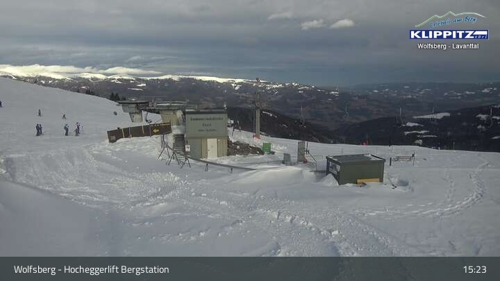 Hier siehst du den Ausblick von der Bergstation Klippitztörl über den Sessellift und die angrenzenden Pisten.