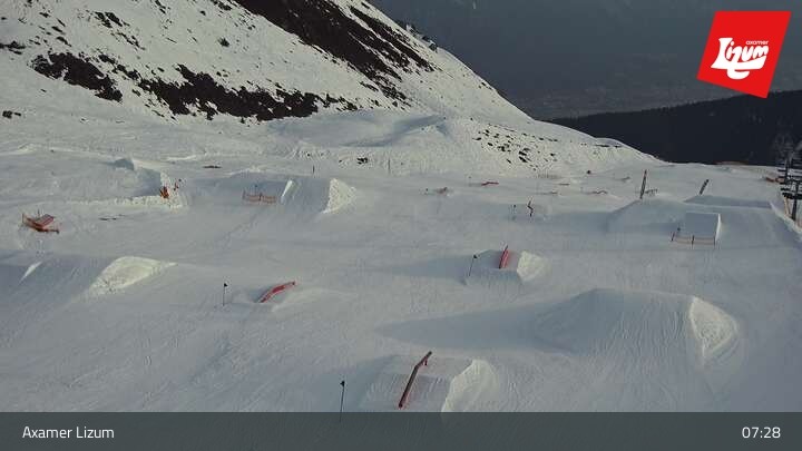 Die Webcam befindet sich an der Bergstation der Karleiten-Sesselbahn in der Axamer Lizum.