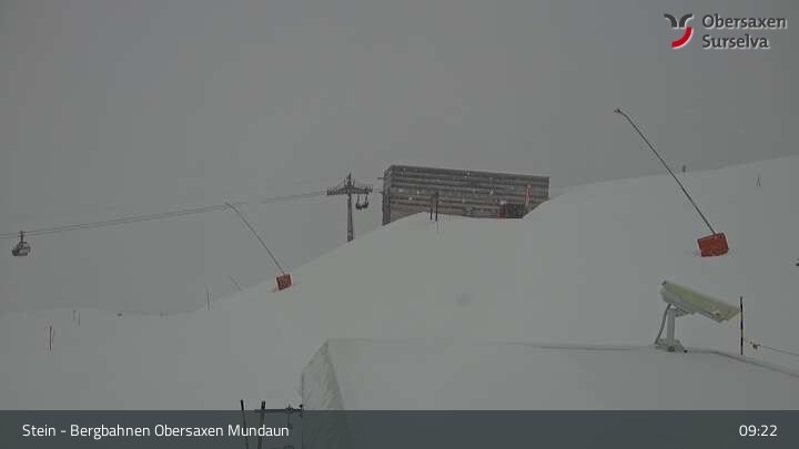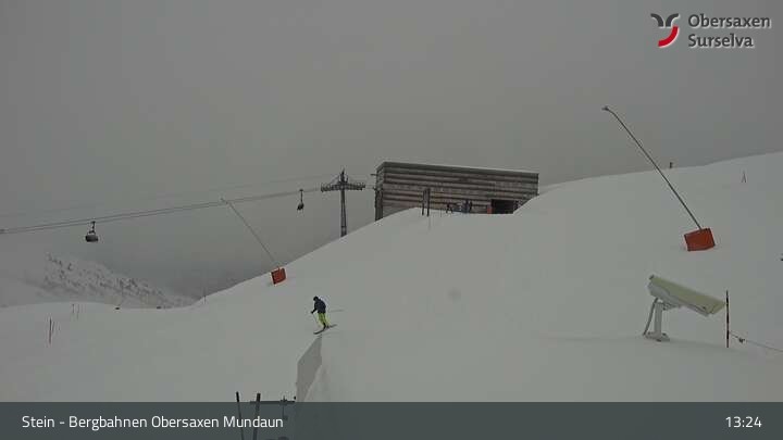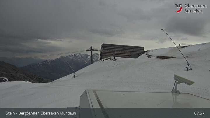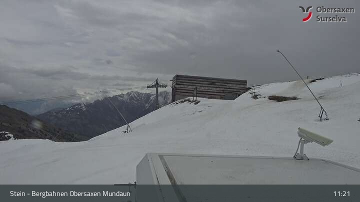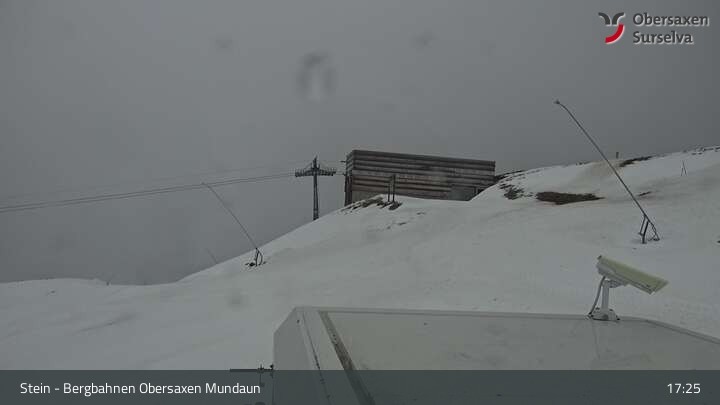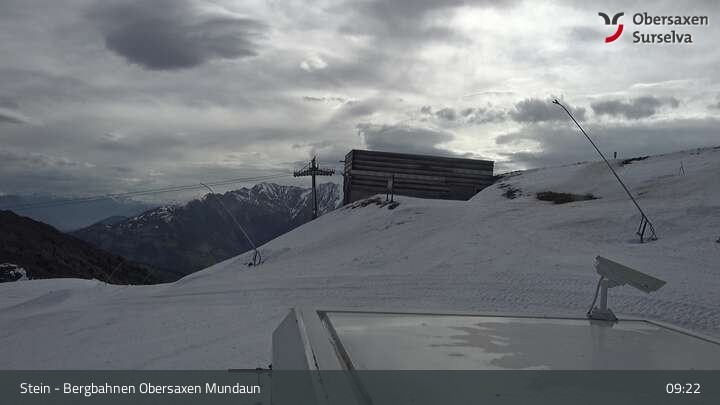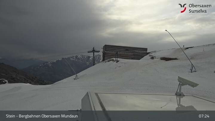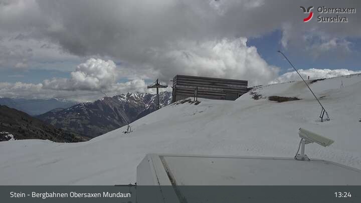 Die Webcam zeigt die Bergstation des Misanenga - Untermatt Lifts in Obersaxen in Graubünden. Die umliegende Alpenwelt ist ideal für Wanderungen und Mountainbiken geeignet.