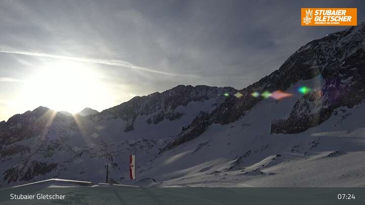 Die Kamera befindet sich an der Bergstation der Eisgrat Gondel am Stubaier Gletscher.
