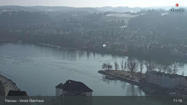 Die Webcam zeigt einen tollen Panoramablick von der Veste Oberhaus auf die Donau und die Altstadt von Passau. Neber der herrschaftlichen Burgfassade sieht man sehr gut die Landzunge zwischen Donau und Inn, auf der die Altstadt mit ihren denkmalgeschützten Häusern liegt. Gut zu erkennen sind unter anderem die Ortspitze am Zusammenfluss der drei Flüsse, das an der Donau liegende Rathaus, der weiße Dom St. Stephan und das erhöhte Kloster Mariahilf in der Innstadt.
