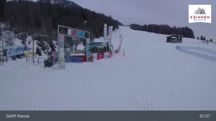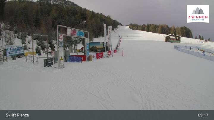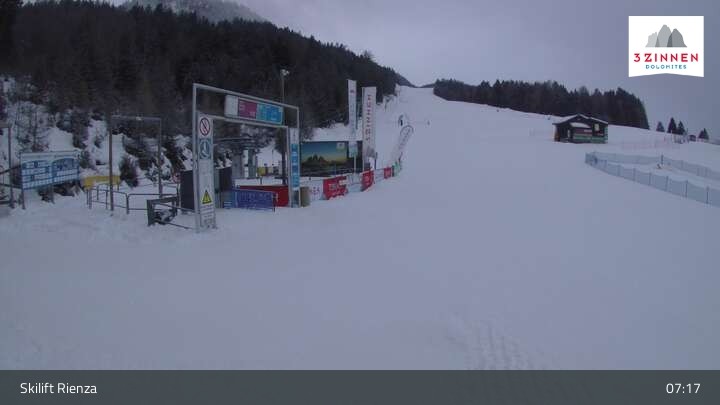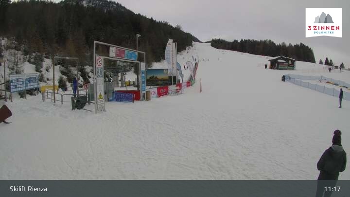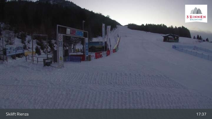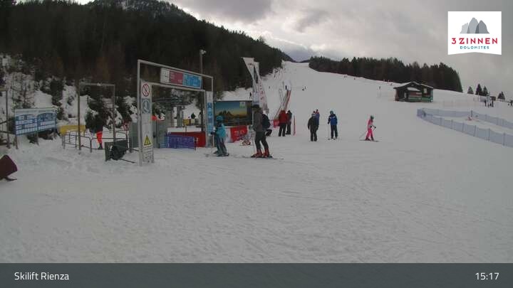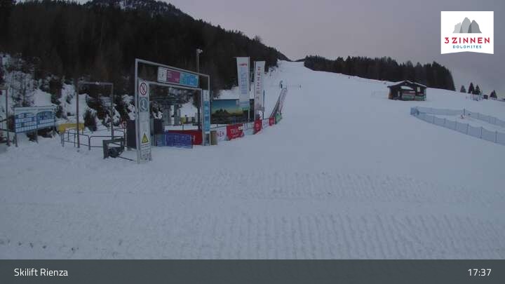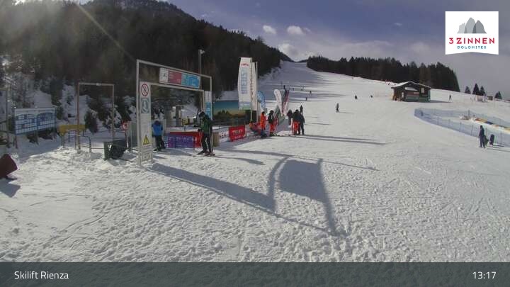Hier siehst du im Winter aktuelle Aufnahmen aus dem Skigebiet Rienz, das sich südlich von Toblach im Hochpustertal befindet.