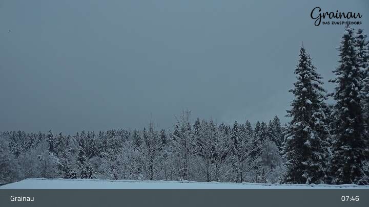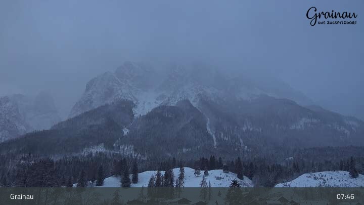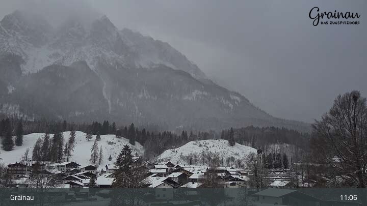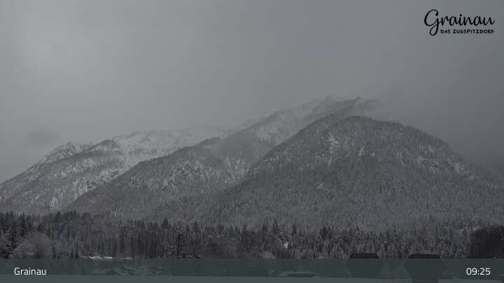 Die Live-Webcam zeigt vom Freibad aus einen Rundumblick auf das Bergdorf Grainau und seine Umgebung. Zu sehen sind unter anderem die Zugspitze, der große und kleine Waxenstein sowie der Hohe Ziegspitz.