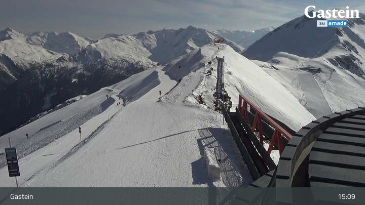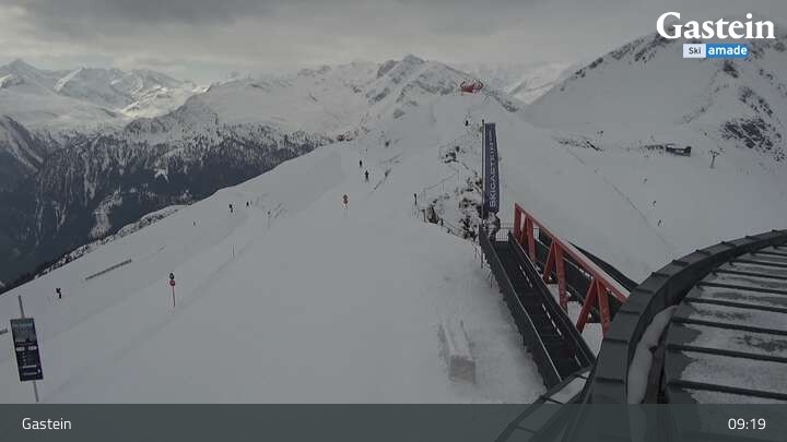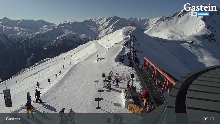 Die Webcam blickt von der Südseite der Bergstation am Stubnerkogel auf die umliegende Bergwelt von Bad Gastein.