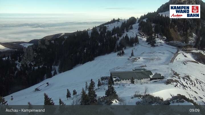Die Webcam eröffnet dir einen Rundumblick von der Bergstation der Kampenwandbahn aus zur Sonnenalm und Roßleiten-Sessellift.