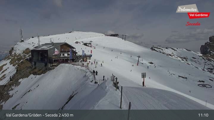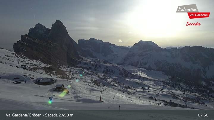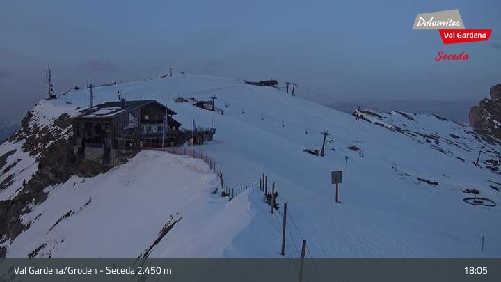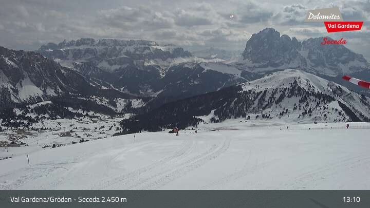 Von der Seceda eröffnet sich der Blick nach Süden zur Sellagruppe und dem Langkofel