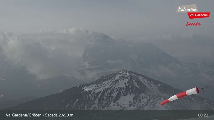 Von der Seceda eröffnet sich der Blick nach Süden zur Sellagruppe und dem Langkofel