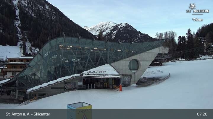 Diese Webcam zeigt dir den Blick vom Skicenter an der Talstation der Galzigbahn in St. Anton.