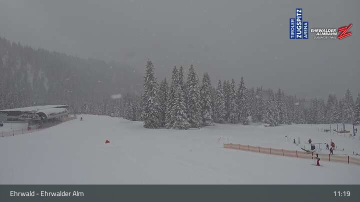 Webcam Sicht auf das Kinderland an der Ehrwalder Alm, 1,491 m