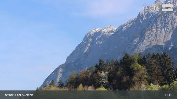 Blick von Pfarrwerfen, unter anderem auf die Burg Hohenwerfen.