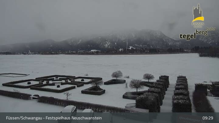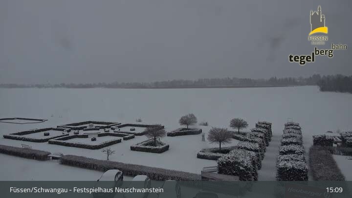 Die Webcam blickt auf den Garten von Ludwigs Festspielhaus in Füssen am Forggensee.