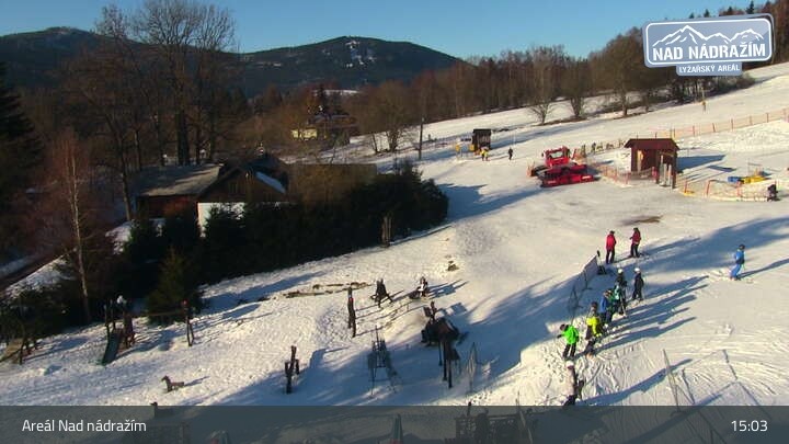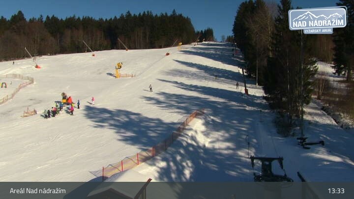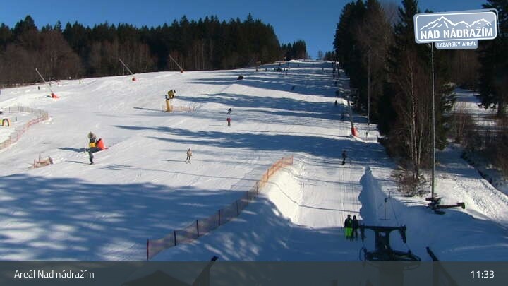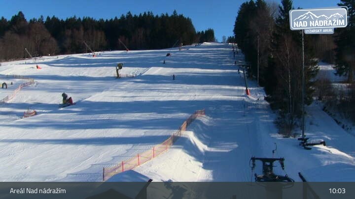 Die Webcam zeigt die Skilifte im Areal Nad nádražím bei Železná Ruda nahe der deutschen Grenze.
