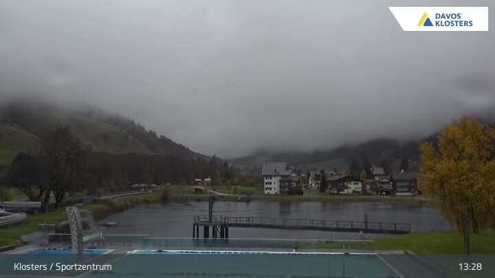 Hier siehst du das Sportzentrum und das Freibad in Klosters