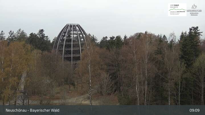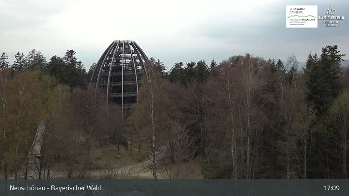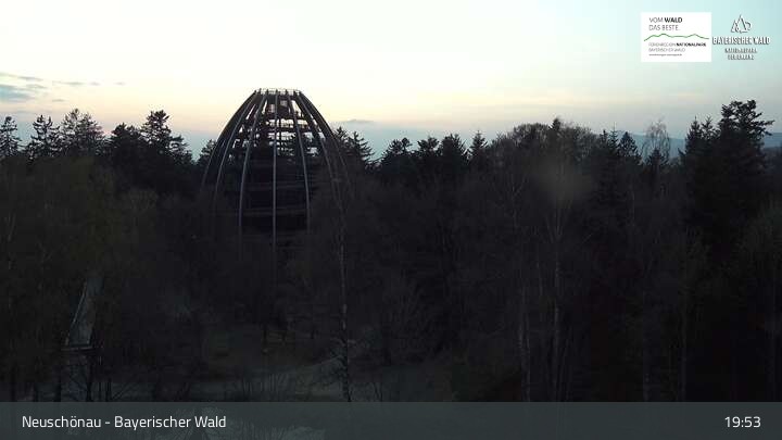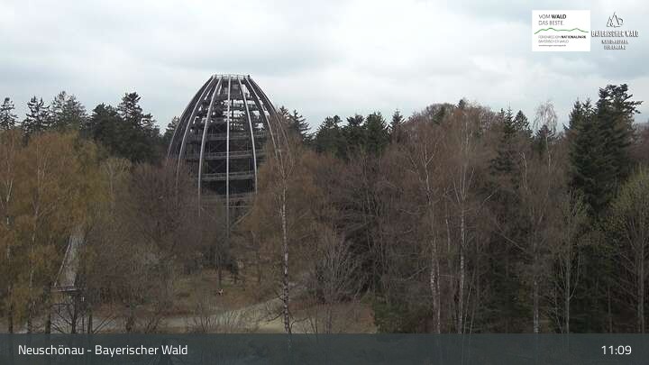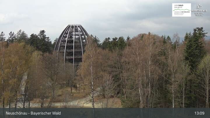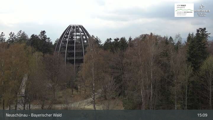 Die Kamera befindet sich in Neuschönau auf dem Dach des Besucherzentrums Hans-Eisenmann-Haus im Nationalparkzentrum Lusen im Bayerischen Wald. Zu sehen ist auch der über 40 Meter hohe Turm des Baumwipfelpfads.