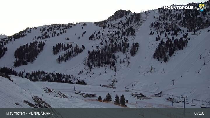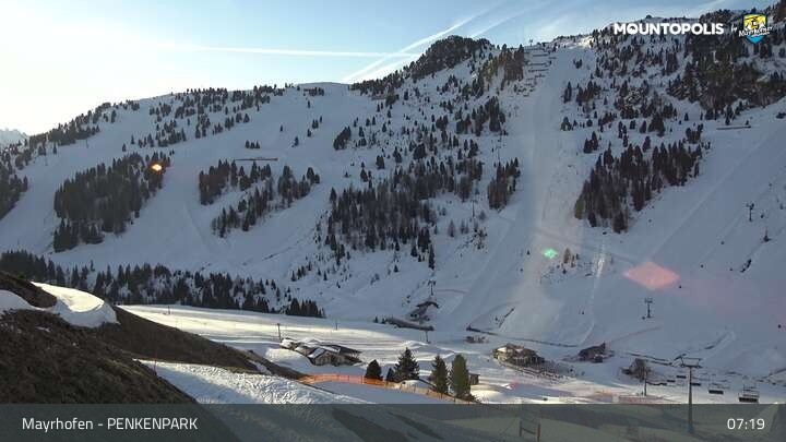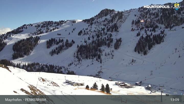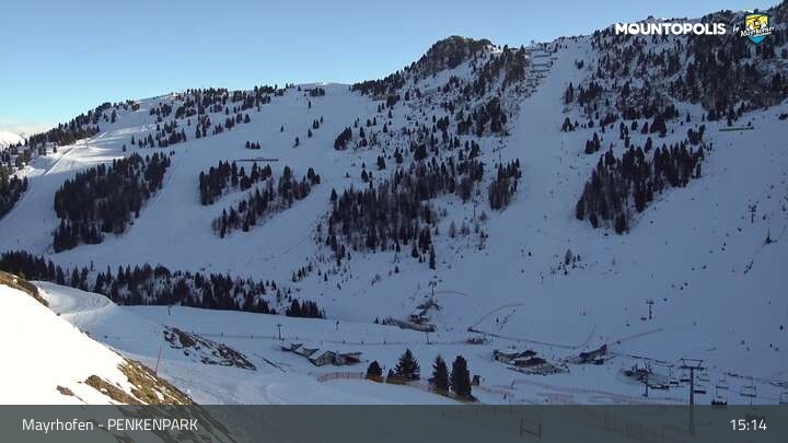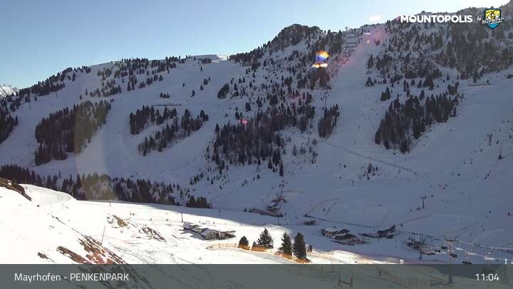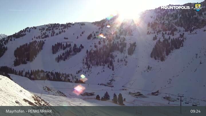 Hier blickst du auf den Vans Penken Park sowie den Sun-Jet Lift im Skigebiet Mayrhofen.