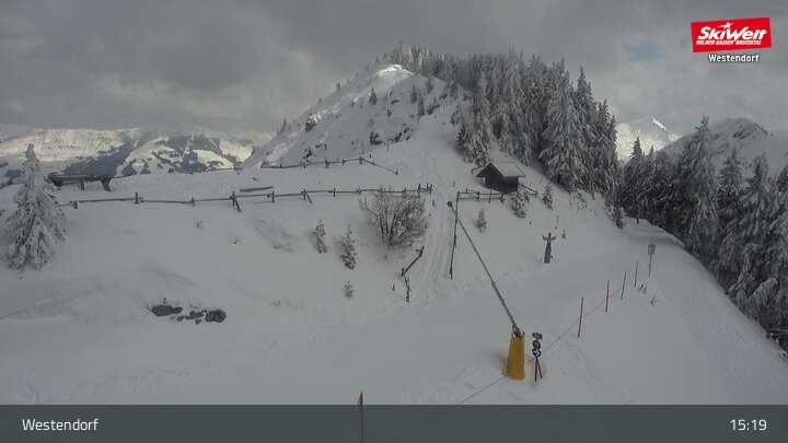 Die Webcam auf der Choralpe in Westendorf blickt auf die umliegende Alpenwelt.