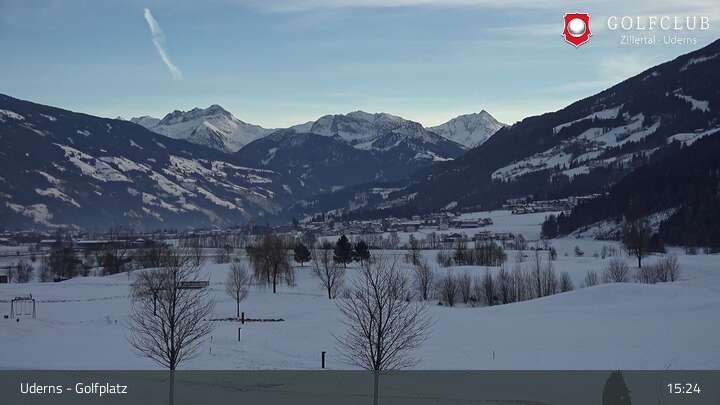 Die Webcam am Golfplatz von Uderns befindet sich inmitten der Zillertaler Alpen.