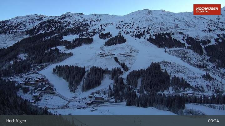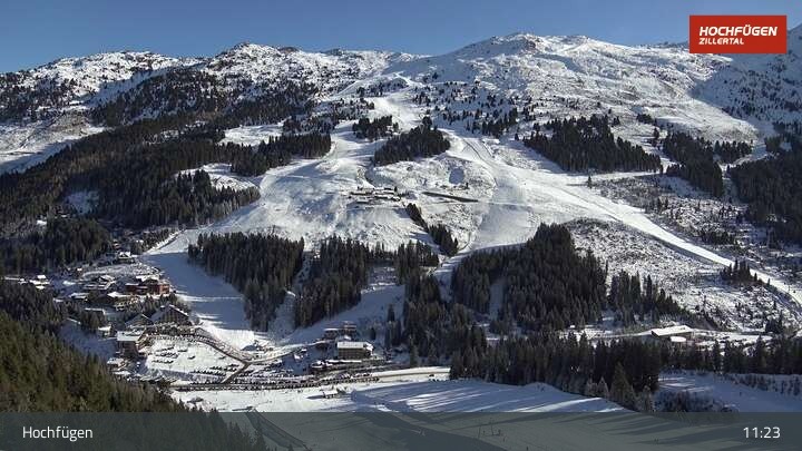 Die Webcam zeigt eine Panoramaufnahme in Hochfügen am Klausboden in der Wanderregion Zillertal.