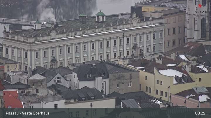 Die Webcam zeigt einen tollen Panoramablick von der Veste Oberhaus auf die Donau und die Altstadt von Passau. Neber der herrschaftlichen Burgfassade sieht man sehr gut die Landzunge zwischen Donau und Inn, auf der die Altstadt mit ihren denkmalgeschützten Häusern liegt. Gut zu erkennen sind unter anderem die Ortspitze am Zusammenfluss der drei Flüsse, das an der Donau liegende Rathaus, der weiße Dom St. Stephan und das erhöhte Kloster Mariahilf in der Innstadt.