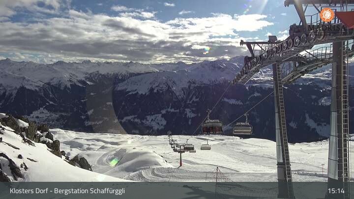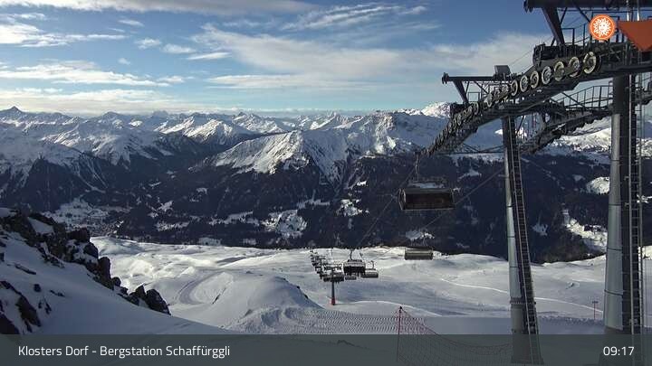 Diese Webcam zeigt die Bergstation des Schaffürggli Lifts auf der Madrisa. Der 2.770 m hohe Berg in den schweizer Alpen bietet vielfältige Wander- und Erlebniswege.