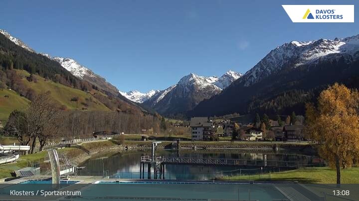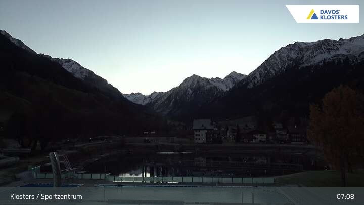 Hier siehst du das Sportzentrum und das Freibad in Klosters