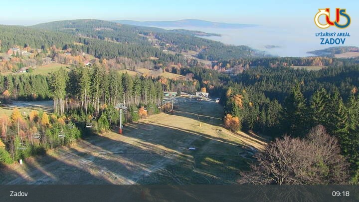Hier blickst du auf das Wintersportgebiet Zadov-Churanov. Es befindet sich in Tschechien an der Grenze zum Nationalpark Böhmerwald.