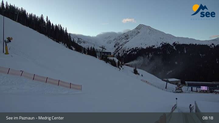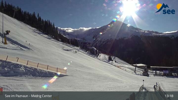 Die Webcam in See eröffnet den Blick vom Medrig Center auf rund 1.800 Metern auf die Bergstation der Medrigjoch-Gondelbahn.