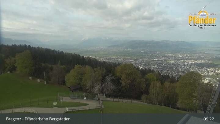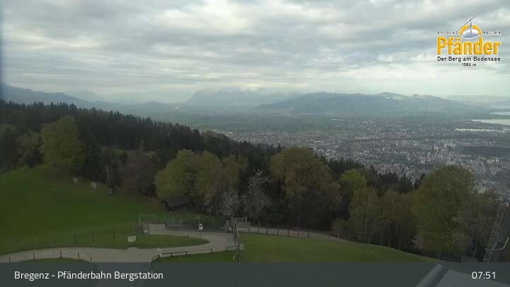Die Video-Webcam zeigt einen traumhaften Panoramablick von der Bergstation am Pfänder hinunter auf den Bodensee und die Stadt Bregenz.