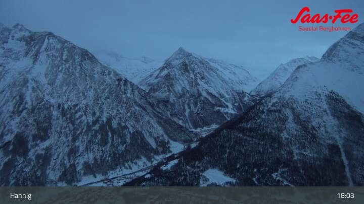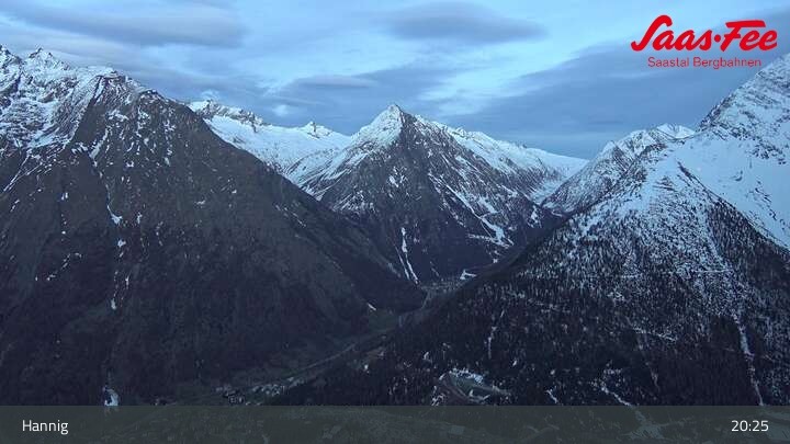 Die Webcam eröffnet einen schönen Ausblick von der Bergstation Hannig über Saas-Fee im Schweizer Kanton Wallis.
