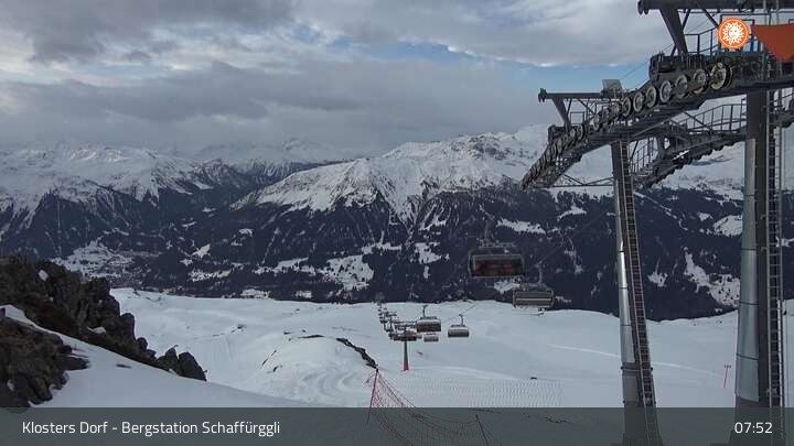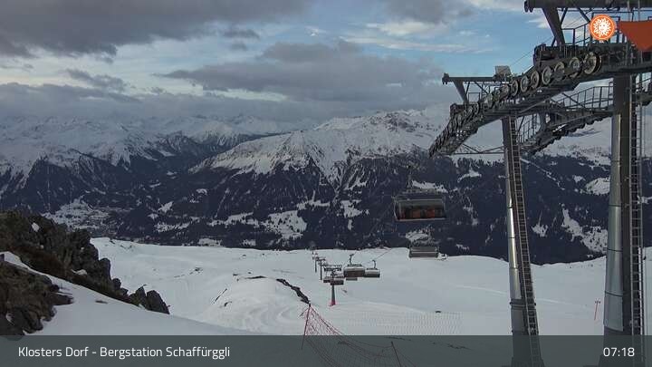 Diese Webcam zeigt die Bergstation des Schaffürggli Lifts auf der Madrisa. Der 2.770 m hohe Berg in den schweizer Alpen bietet vielfältige Wander- und Erlebniswege.