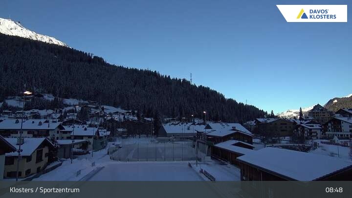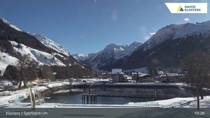 Hier siehst du das Sportzentrum und das Freibad in Klosters