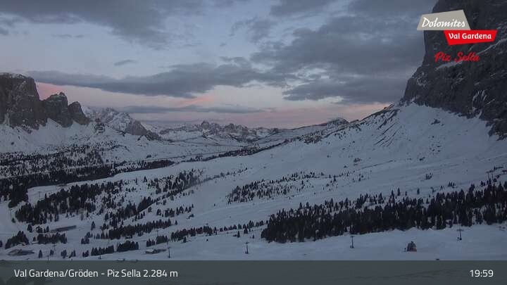 Ausblick von der Bergstation am Piz Sella in Val Gardena in Südirol. Zu sehen sind u.a. der Langkofel und die Sellagrupee.