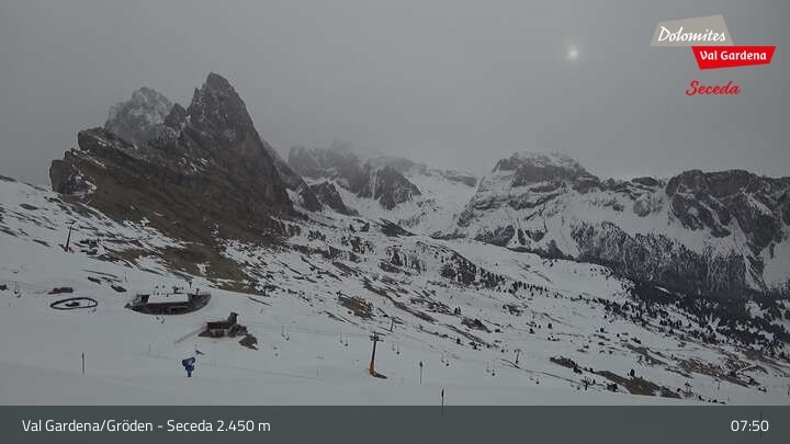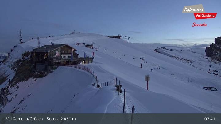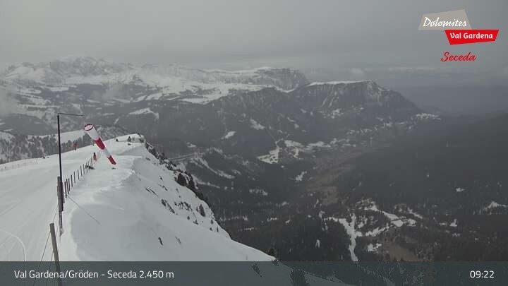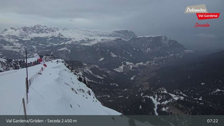 Von der Seceda eröffnet sich der Blick nach Süden zur Sellagruppe und dem Langkofel