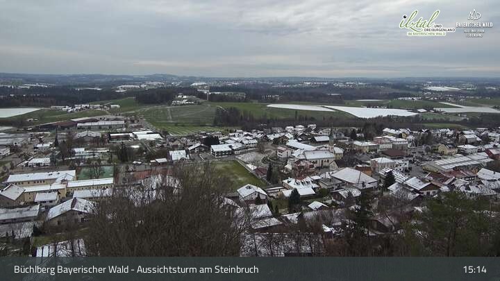 Webcam Büchlberg und Steinbruchsee vom Aussichtsturm, 527 m