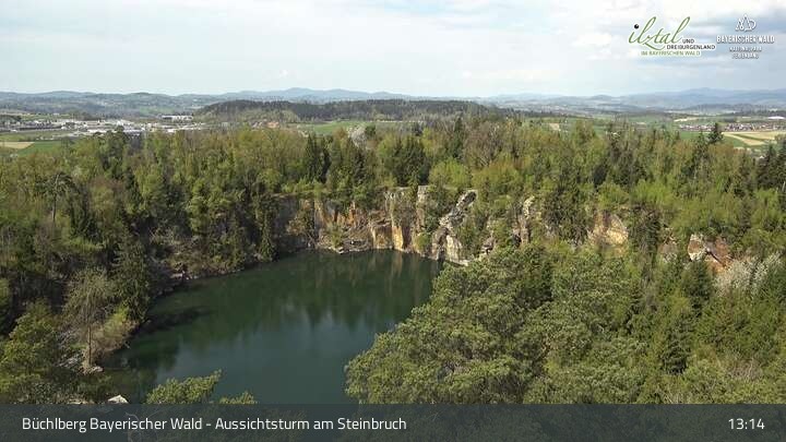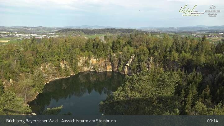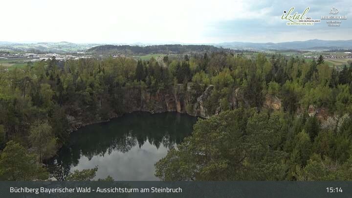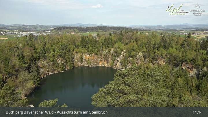 Webcam Büchlberg und Steinbruchsee vom Aussichtsturm, 527 m