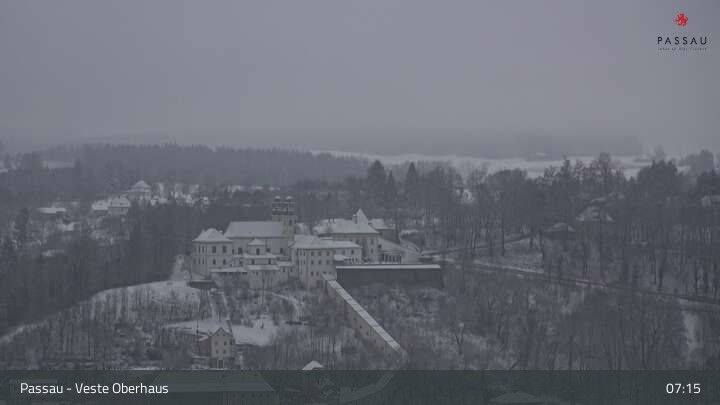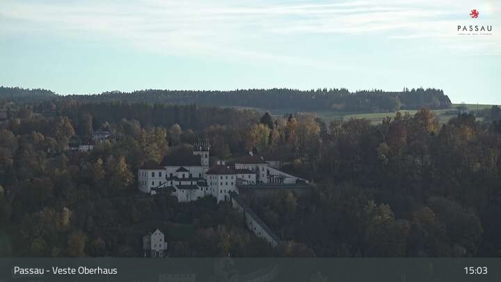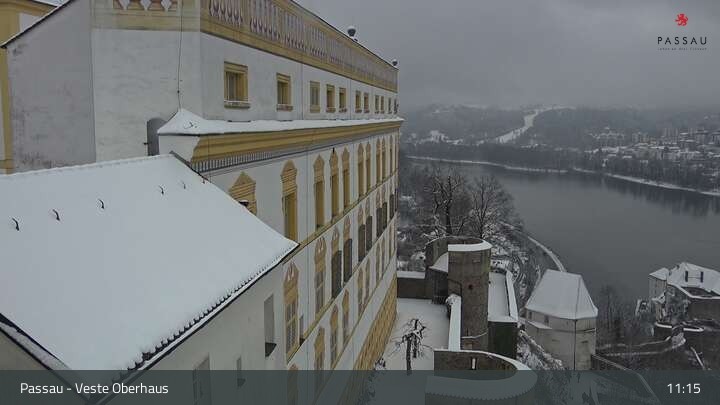Die Webcam zeigt dir den Blick von der Veste Oberhaus über die Donau zur Altstadt der niederbayerischen Stadt Passau. Sehr gut zu erkennen sind links Teile der Burgveste, die Ortspitze wo die drei Flüsse Donau, Inn und Ilz zusammenfließen, die Hängebrücke über die Donau und rechts der weiße Stephansdom.