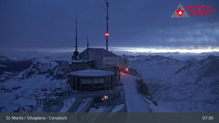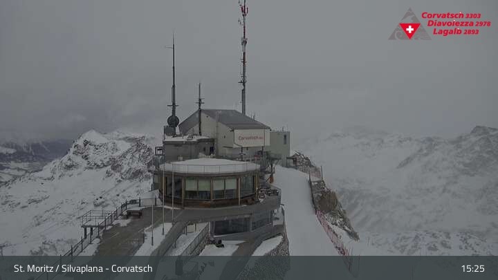 Die Webcam zeigt einen tollen Panoramablick von der Bergstation der Seilbahn am Corvatsch auf den Silvaplanersee.
