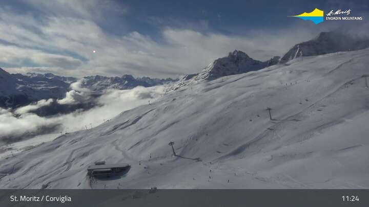 Hier siehts du die Pisten unterhalb der Chantrella Corviglia Bahn