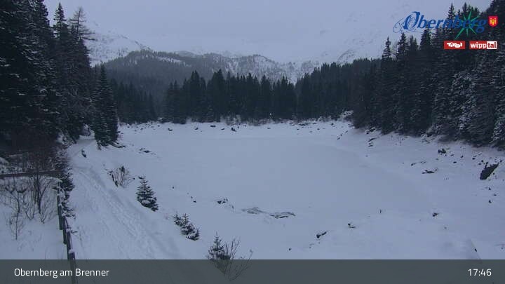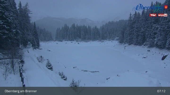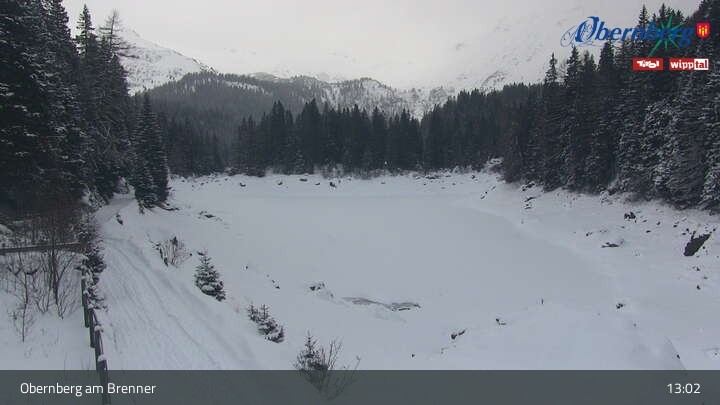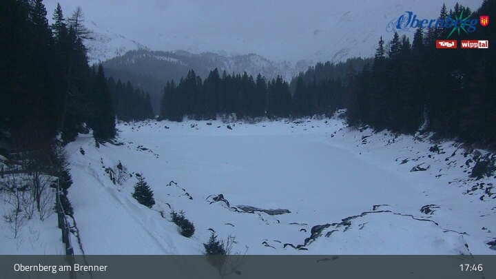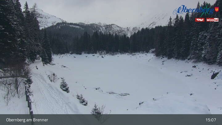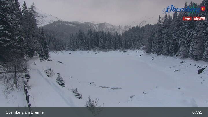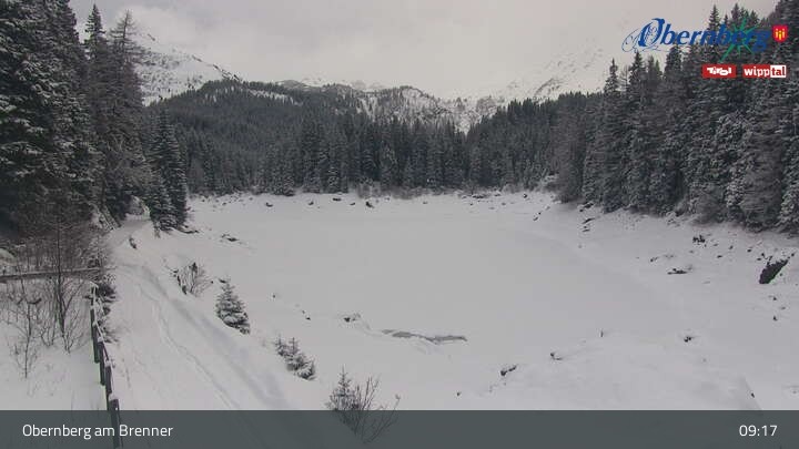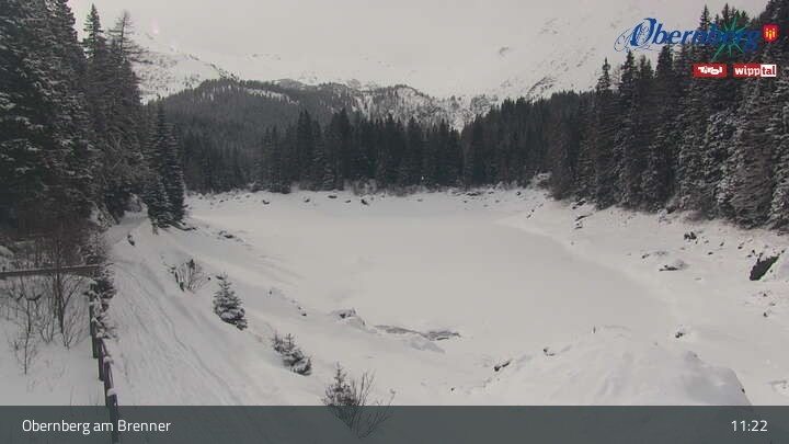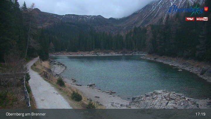 Die Kamera blickt auf den Obernberger See am Brenner.