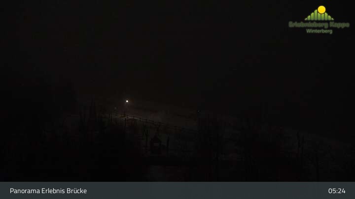 Aktueller Blick auf den Erlebnisberg Kappe in Winterberg. Im Sommer befinden sich hier Teile des Bikeparks und die Panorama Erlebnis Brücke, im Winter siehst du hier unter anderem Skipisten und einen Kinderpark.
