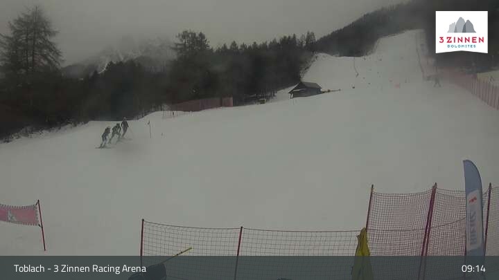Hier siehst du die Berge rund um Toblach in Südtirol. Die Webcam befindet sich an der Talstation des Trenkerlifts.