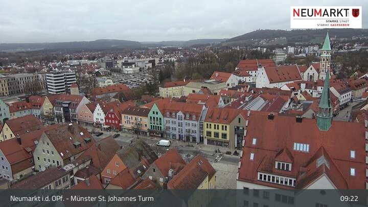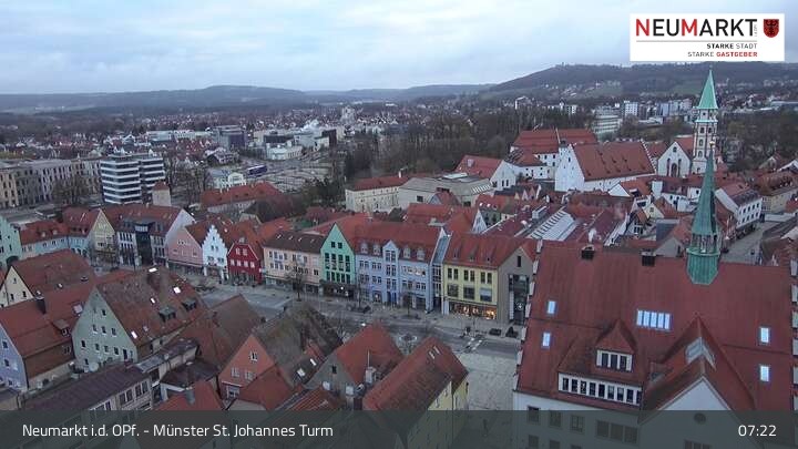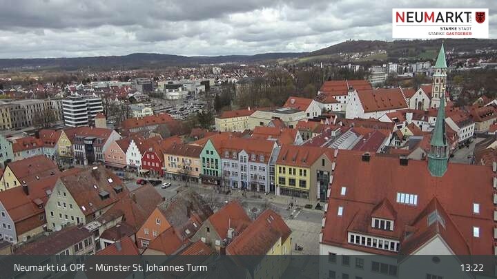 Die Webcam befindet sich am Turm der St. Johannes Kirche in Neumarkt in der Oberpfalz und zeigt einen tollen Panoramablick über die Stadt.