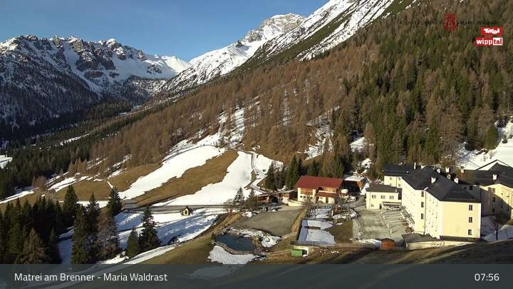 Die Webcam zeigt live einen Eindruck vom bekannten Wallfahrtsort Maria Waldrast am Brenner. Dort befindet sich auch eine Klostergaststätte zur Einkehr.