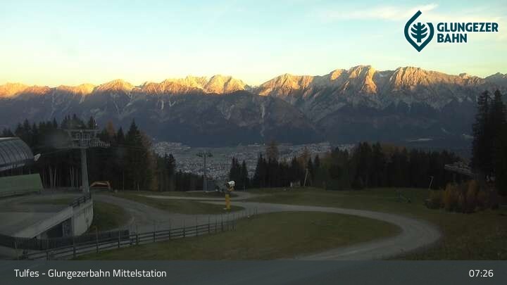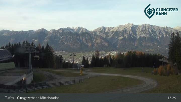 Webcam Tulfes: Blick von der Mittelstation am Glungezer, 1,553 m