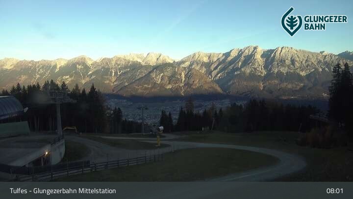 Die Webcam ist an der Mittelstation des Glungezer positioniert und zeigt einen tollen Panoramablick auf das Ski- und Wandergebiet in Tulfes.
