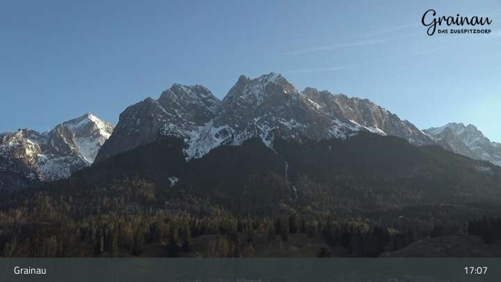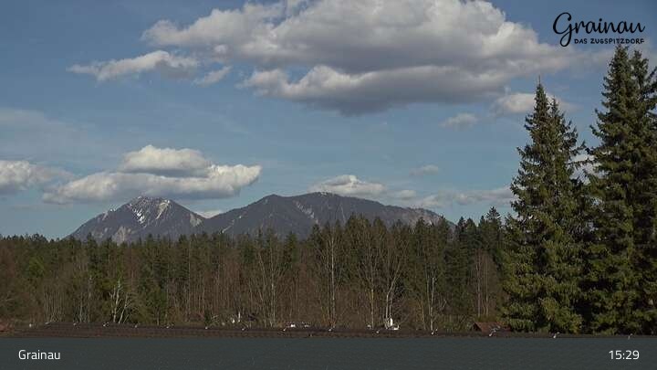 Die Live-Webcam zeigt vom Freibad aus einen Rundumblick auf das Bergdorf Grainau und seine Umgebung. Zu sehen sind unter anderem die Zugspitze, der große und kleine Waxenstein sowie der Hohe Ziegspitz.